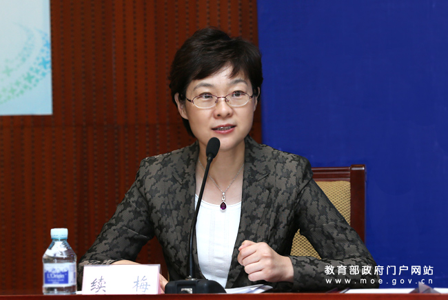 教育部新聞發(fā)言人續(xù)梅主持發(fā)布會。(中國教育報記者 張勁松/攝)