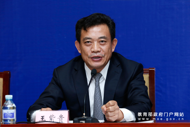 教育部高等教育司司長張大良介紹大賽總體情況和總決賽相關(guān)活動安排。(中國教育報記者 張勁松/攝)