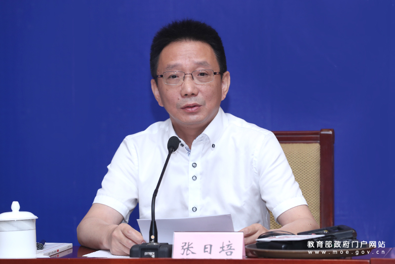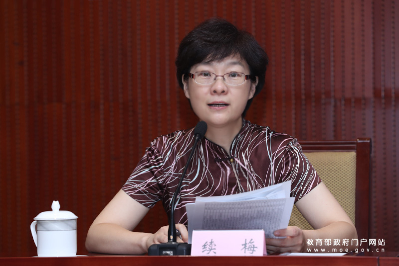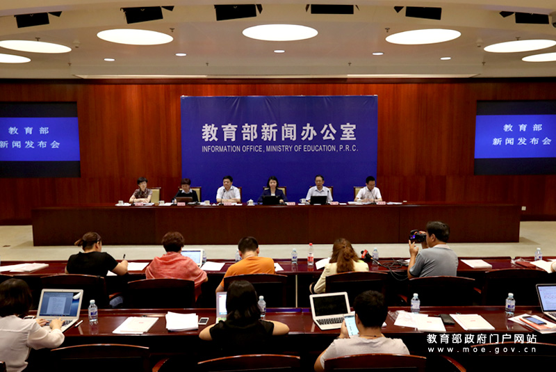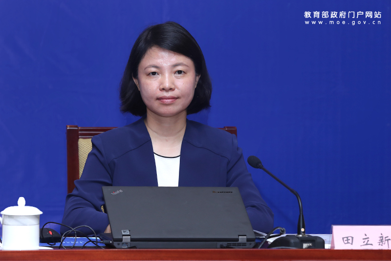 教育部新聞發(fā)言人續(xù)梅主持發(fā)布會(huì)。(中國教育報(bào)記者 張勁松/攝)