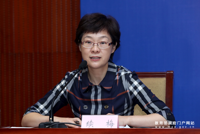 教育部新聞發(fā)言人續(xù)梅主持發(fā)布會。(中國教育報記者 張勁松/攝)