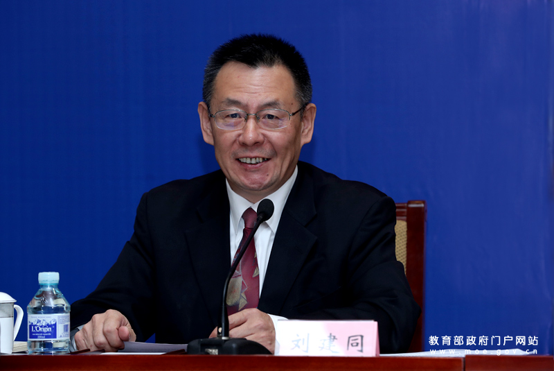 教育部教師工作司巡視員劉建同發(fā)布教師隊伍建設(shè)典型工作案例。(中國教育報記者 張勁松/攝)