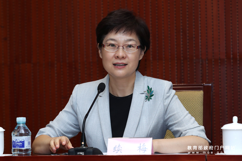教育部新聞發(fā)言人續(xù)梅主持發(fā)布會。(中國教育報記者 張勁松/攝)