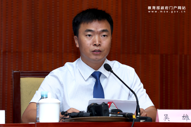 貴州省黔西南州興仁巴鈴鎮(zhèn)塘房小學(xué)校長吳雄就貫徹落實情況發(fā)言。(中國教育報記者 張勁松/攝)