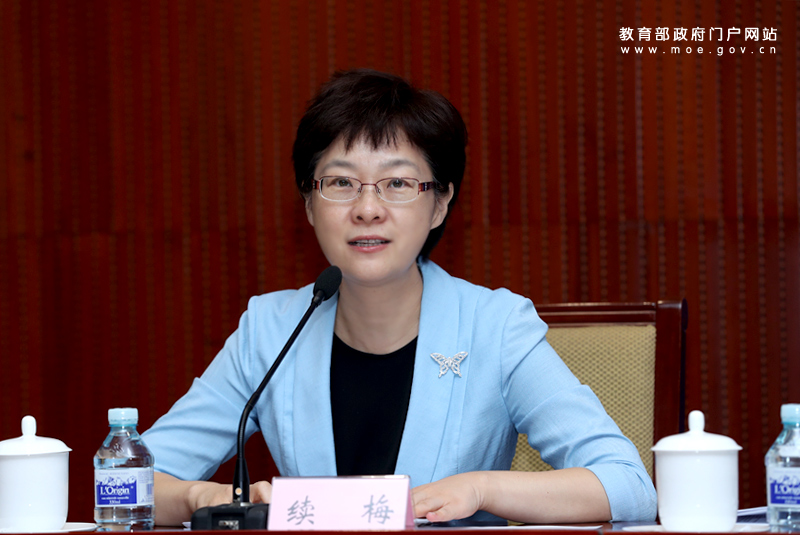 教育部新聞發(fā)言人續(xù)梅主持發(fā)布會(huì)。(中國(guó)教育報(bào)記者 張勁松/攝)