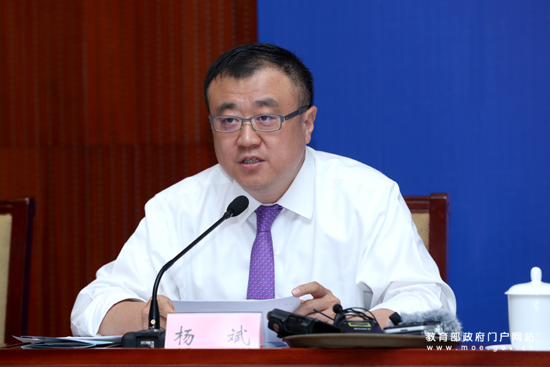 清華大學(xué)副校長(zhǎng)楊斌介紹清華大學(xué)資助育人工作開展情況。(中國(guó)教育報(bào)記者 張勁松/攝)
