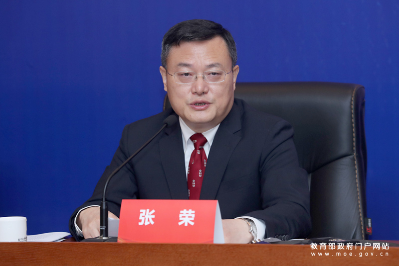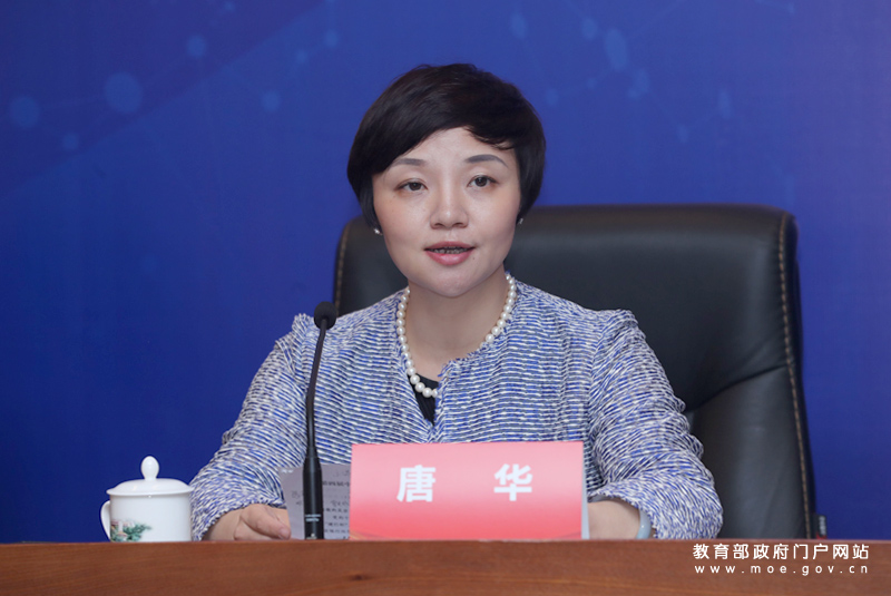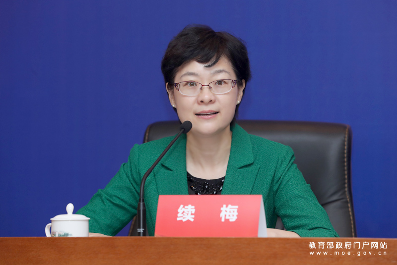 教育部新聞發(fā)言人續(xù)梅主持發(fā)布會(huì)。(中國教育報(bào)記者 張勁松/攝)