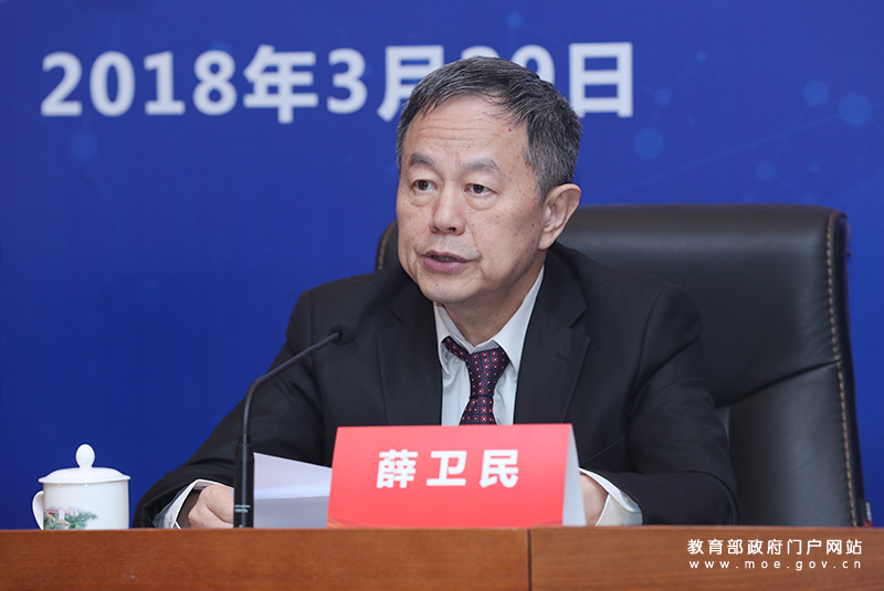 福建省政協(xié)副主席、教育廳副廳長薛衛(wèi)民介紹福建省籌備情況。(中國教育報(bào)記者 張勁松/攝)