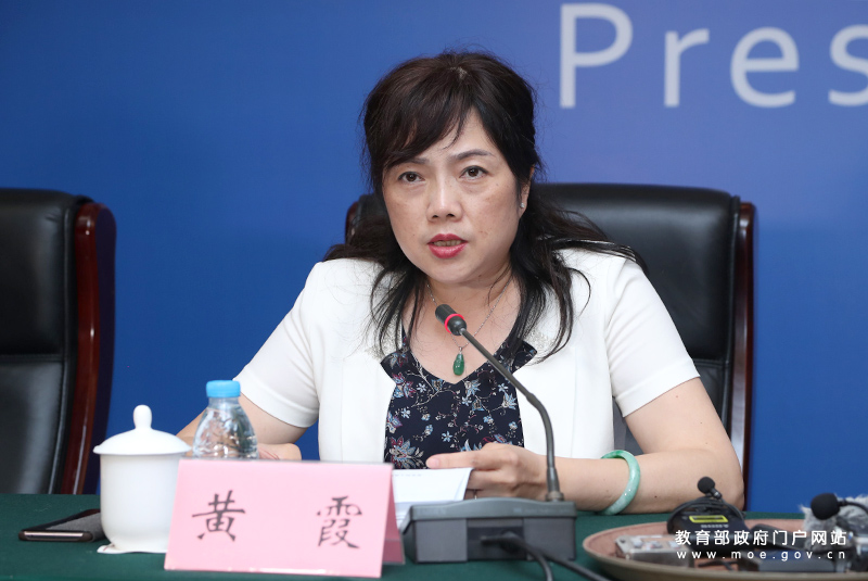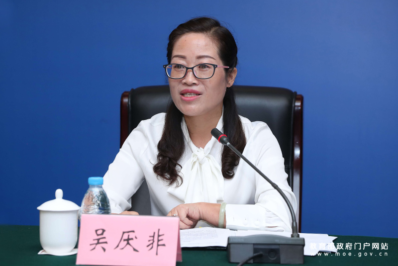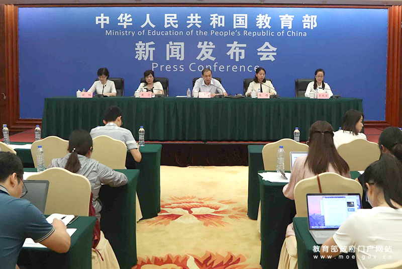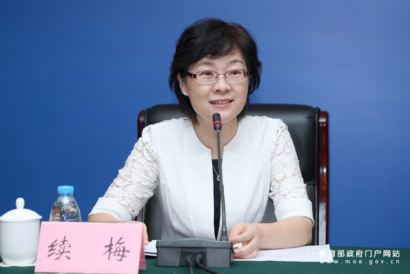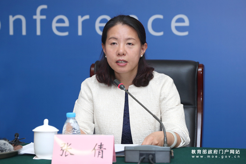 教育部新聞發(fā)言人續(xù)梅主持發(fā)布會。(中國教育報記者 張勁松/攝)