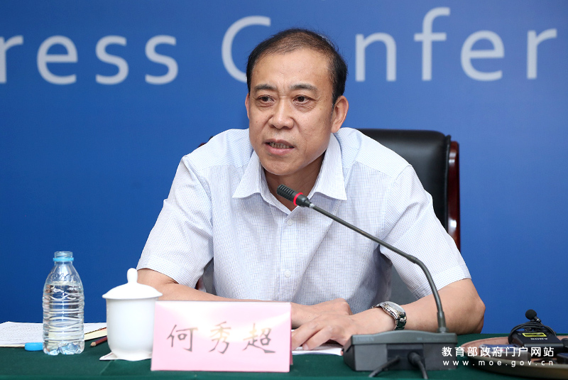 國務(wù)院教育督導(dǎo)委員會辦公室主任、教育部教育督導(dǎo)局局長何秀超介紹農(nóng)村義務(wù)教育學(xué)生營養(yǎng)改善計劃總體情況。(中國教育報記者 張勁松/攝)