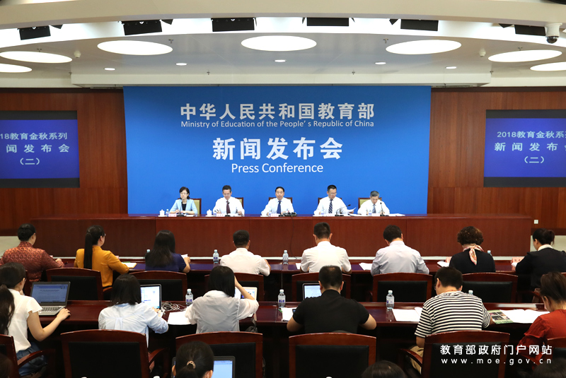 教育部召開新聞發(fā)布會介紹貫徹落實《中共中央國務院關于全面深化新時代教師隊伍建設改革的意見》有關情況和2018年教師節(jié)主要活動安排,公布2018年度全國教書育人楷模名單。(中國教育報記者 張勁松/攝)