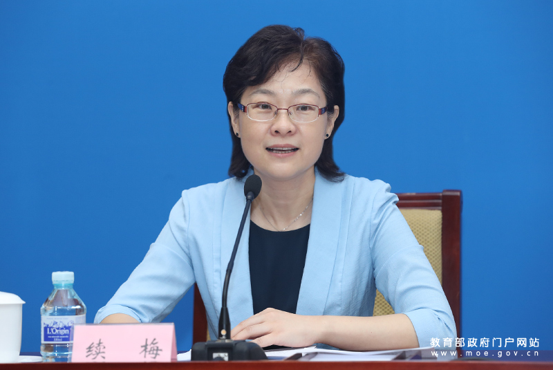 教育部新聞發(fā)言人續(xù)梅主持發(fā)布會。(中國教育報記者 張勁松/攝)