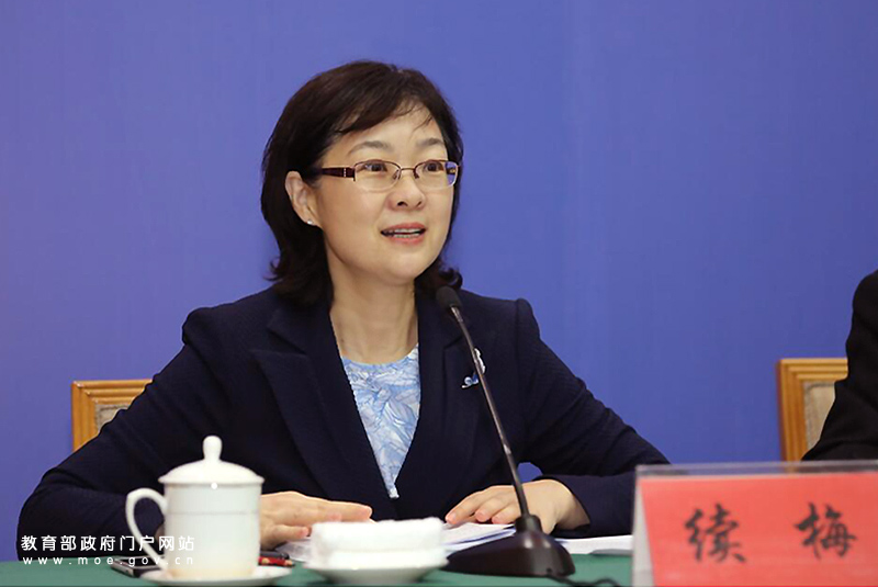 教育部新聞發(fā)言人續(xù)梅主持發(fā)布會(huì)。(山東教育廳新聞中心 王占波/攝)