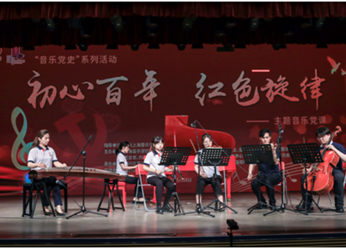 5月28日,上海音樂學(xué)院繼5月27日走進(jìn)上海市徐匯區(qū)楓林街道進(jìn)行文藝宣講后,又走進(jìn)上海市閔行區(qū)群眾藝術(shù)館,舉辦以“初心百年 紅色旋律”為主題的音樂黨課。在青年學(xué)生的創(chuàng)意改編下,一首首膾炙人口的紅色旋律被演繹出青春的色彩?!都t星閃閃》被配上電子音樂伴奏,《建國大業(yè)》的主題曲《追尋》被改編成為弦樂四重奏,《我愛你,中國》更是將中西樂器大膽交融,以古箏和鋼琴的獨特音色增強了作品的感染力。伴著新時代的全新表達(dá),在場群眾重溫了中華民族的輝煌歷史和風(fēng)雨歷程,紛紛表示要將紅色精神“薪火相傳”。