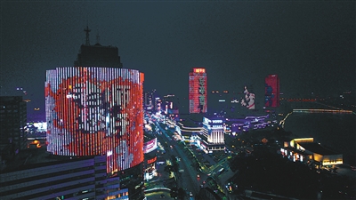 9月9日,浙江省寧波市地標(biāo)建筑上演燈光秀,向教師致敬。(張士良/攝)