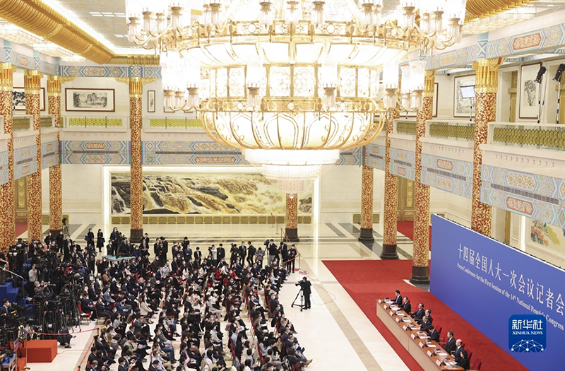 3月13日,十四屆全國(guó)人大一次會(huì)議在北京人民大會(huì)堂舉行記者會(huì),國(guó)務(wù)院總理李強(qiáng)應(yīng)大會(huì)發(fā)言人王超的邀請(qǐng)出席記者會(huì),并回答中外記者提問(wèn)。國(guó)務(wù)院副總理丁薛祥、何立峰、張國(guó)清、劉國(guó)中參加。(新華社記者 李鑫/攝)