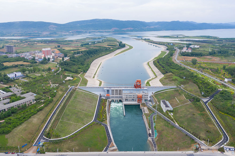 這是2021年5月20日在河南省南陽市淅川縣拍攝的南水北調(diào)中線工程陶岔渠首(無人機(jī)照片)。(新華社記者 才揚(yáng)/攝)