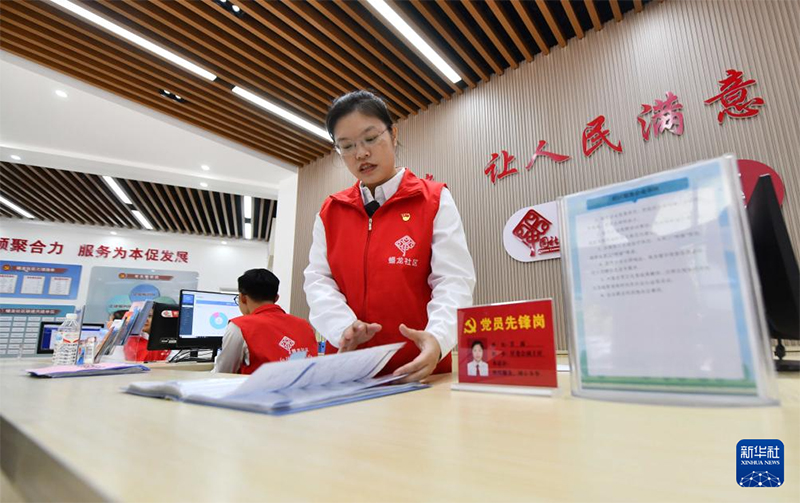 在廣西南寧市蟠龍社區(qū),工作人員在為居民服務(wù)(2023年12月14日攝)。(新華社記者 黃孝邦/攝)