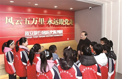 “收到總書記的回信后,我們校園發(fā)生了許多新變化?!毙掳残W(xué)校長張大冬介紹,在學(xué)習(xí)和探索中,新安小學(xué)逐步形成了落實(shí)回信精神、傳承紅色基因、弘揚(yáng)新旅傳統(tǒng)的三大“課堂”?!耙皇菍?shí)境課堂,我們帶領(lǐng)孩子們走進(jìn)新旅歷史紀(jì)念館,每年開學(xué)第一課,一年級(jí)的小朋友都要聽大哥哥大姐姐給他們講新旅的故事;二是體驗(yàn)課堂,通過排演劇目、詩歌朗誦的方式,開展主題教育活動(dòng),在活動(dòng)當(dāng)中讓孩子們體驗(yàn)新旅的紅色傳統(tǒng);三是實(shí)踐課堂,帶領(lǐng)孩子們走出校園,參加社會(huì)實(shí)踐活動(dòng),比如開展紅色尋訪活動(dòng),去年我們帶領(lǐng)同學(xué)們重走新旅路,尋訪新旅活動(dòng)舊跡,采訪新旅老團(tuán)員,和當(dāng)?shù)貙W(xué)校進(jìn)行交流學(xué)習(xí)。”張大冬說。