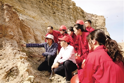國(guó)家級(jí)教學(xué)名師朱筱敏與克拉瑪依校區(qū)學(xué)生進(jìn)行野外地質(zhì)實(shí)習(xí)。(學(xué)校供圖)