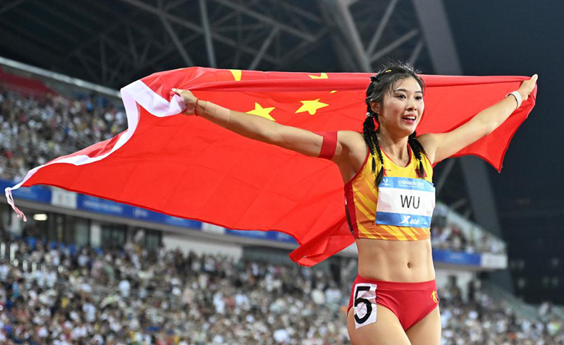 8月4日晚,在全場的歡呼聲中,中國選手吳艷妮摘得本屆大運會女子100米欄銀牌,12秒76的成績也同時達標世錦賽和巴黎奧運會。賽后她激動地說:“劉翔在2004年雅典奧運會上奪得男子110米欄冠軍,始終激勵著我們這一代運動員努力站在奧運會的賽場上為國爭光。”大運會讓這個“川妹子”在家門口圓了進軍巴黎的夢。