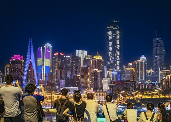 教師是執(zhí)燈者,為莘莘學(xué)子照亮前進(jìn)的道路。第39個教師節(jié),重慶的夜晚為50余萬名教育工作者而亮,點亮那份專屬于他們的璀璨星光,弘揚尊師重教的時代風(fēng)尚。