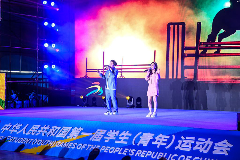 8月13日,歌手在演唱第一屆全國學生(青年)運動會會歌《青春遇見》。(新華社記者 曹祎銘/攝)