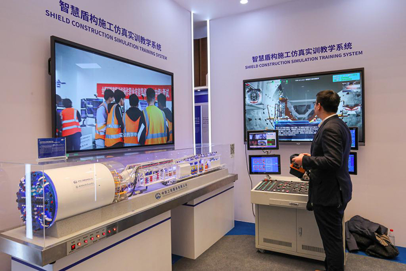 2024世界數(shù)字教育大會(huì)于1月29日至31日在上海舉辦。1月30日,工作人員在“數(shù)智未來(lái)”教育展上演示智慧盾構(gòu)施工仿真實(shí)訓(xùn)教學(xué)系統(tǒng)。(新華社記者 辛夢(mèng)晨/攝)
