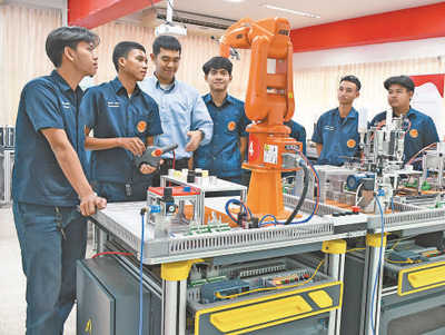 泰國魯班工坊學生參加自動化生產(chǎn)線實訓。(本報記者 孫廣勇/攝)