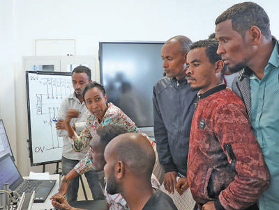 埃塞俄比亞魯班工坊由埃塞俄比亞聯(lián)邦職業(yè)技術(shù)培訓學院和天津職業(yè)技術(shù)師范大學合辦,于2021年揭牌運營,聚焦工業(yè)傳感器、機電一體化、工業(yè)控制和工業(yè)機器人4個方向。據(jù)埃塞俄比亞魯班工坊中方負責人江絳介紹,魯班工坊課程對接埃塞俄比亞職業(yè)教育大綱標準,不僅為師生提供本土化實操課程,也為當?shù)叵嚓P(guān)領(lǐng)域企業(yè)員工提供技能培訓。自成立以來,已有1600多名學生通過魯班工坊的培訓,走向本土或國際企業(yè)崗位。