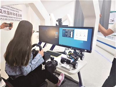 在哈薩克斯坦魯班工坊,學(xué)員正借助輔助駕駛系統(tǒng)學(xué)習(xí)車輛駕駛。(扎娜爾/攝)