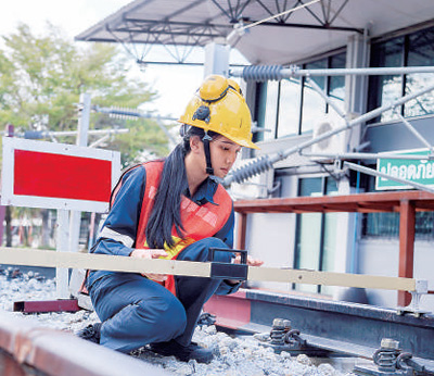 在泰國春武里技術(shù)學(xué)院內(nèi),軌道交通專業(yè)學(xué)生正在進(jìn)行測距等實操學(xué)習(xí)。隨著中泰鐵路項目的推進(jìn),該學(xué)院積極與中國對口院校開展高鐵技術(shù)培訓(xùn)等交流合作。(本報亞太中心分社 普拉維/攝)