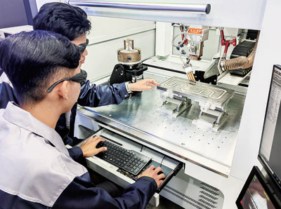 由南京工業(yè)職業(yè)技術(shù)大學(xué)與柬埔寨柬華理事總會合作共建的柬華應(yīng)用科技大學(xué),是中柬職業(yè)教育交流合作的重要成果。圖為該校學(xué)生正在進(jìn)行現(xiàn)代焊接技術(shù)的實操學(xué)習(xí)。(查伊霍克/攝)
