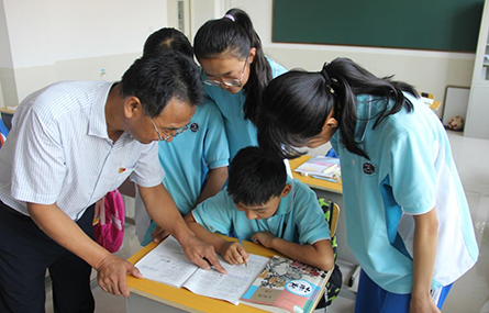 安老師在教學(xué)方面,也有自己獨(dú)特的一套方法“自主學(xué)習(xí),先學(xué)后教”,這種教學(xué)方式的轉(zhuǎn)變,源自于一次赴外聯(lián)校教研活動(dòng),在那里他接受了新的教育思想:“讓學(xué)生的問題牽著你的鼻子走,不要把你的問題強(qiáng)加給學(xué)生”“課堂容量的大小,不是知識(shí)容量的多少,而是思維量的大小”,他的課堂都充滿了探究學(xué)習(xí)的氛圍,學(xué)伴互助,互幫互學(xué),對(duì)此,他陷入了深深的顛覆性的思考,問題一定出在老師身上,如果說以前是以量的積累——題海戰(zhàn)術(shù)達(dá)到熟能生巧的應(yīng)試目標(biāo),那么現(xiàn)在應(yīng)轉(zhuǎn)變?yōu)榘l(fā)現(xiàn)問題、尋求解決問題的辦法,然后達(dá)到事半功倍的效果,這才是真真的智慧。從此,他的教學(xué)工作翻開了新的篇章。對(duì)于初一起始年級(jí)的教學(xué)中,首先針對(duì)學(xué)生的實(shí)際情況,制定教學(xué)策略,其次在課堂上,耐心引導(dǎo)學(xué)生先自主學(xué)習(xí),把不懂的問題作為教師要教的內(nèi)容,大膽嘗試,堅(jiān)持不懈,往往到了第二學(xué)期,學(xué)生們便開始會(huì)學(xué)語文,學(xué)得輕松起來,安老師也教得輕松起來了。安老師還制定了“勇當(dāng)小老師”“以優(yōu)帶差”“結(jié)對(duì)子”的學(xué)習(xí)策略,倡導(dǎo)互相學(xué)習(xí)、學(xué)伴互助、互相競爭的學(xué)風(fēng),針對(duì)不同層次的學(xué)生,安老師采取分類布置作業(yè)的方法,極大調(diào)動(dòng)學(xué)生學(xué)習(xí)積極性。