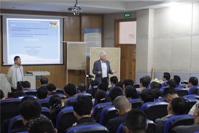 依據(jù)職業(yè)教育活動周總體安排,5月12日上午邀請德國漢斯·賽德爾基金會駐上海代表邵貝德博士、德國職業(yè)學(xué)校質(zhì)量管理專家凱斯納先生來平度為平度雙元制校企聯(lián)盟內(nèi)理事單位舉辦職業(yè)學(xué)校質(zhì)量管理體系講座,來自50余家理事單位的相關(guān)人員到場聽課。