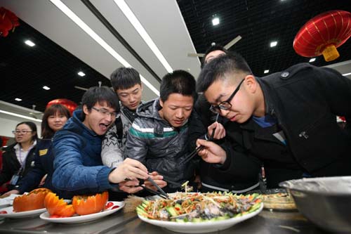 12月8日,天津職業(yè)大學(xué)的師生在美食周活動中烹飪美食。當(dāng)日,天津職業(yè)大學(xué)第三屆美食周拉開帷幕,本次活動以“全面、均衡、適量——培養(yǎng)健康的飲食行為”為主題。在為期5天的活動中,通過開展師生廚藝展示、招牌菜評比、健康飲食講座等活動,向廣大師生宣傳健康飲食知識,推廣傳統(tǒng)飲食文化,進(jìn)一步加強(qiáng)校園文化建設(shè)。(張穎 攝)