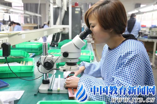 3月19日,河南省溫縣職業(yè)技術(shù)教育中心的學(xué)生在校園車間檢測(cè)電感元件。近年來(lái),河南省溫縣職業(yè)技術(shù)教育中心深入推進(jìn)校企合作,積極探索“校企結(jié)合、工學(xué)結(jié)合、穩(wěn)定就業(yè)”的辦學(xué)模式,引入企業(yè)的生產(chǎn)車間直接進(jìn)駐校園,校園車間可為學(xué)生提供50個(gè)實(shí)習(xí)崗位和120余個(gè)社會(huì)勞動(dòng)力就業(yè)崗位。(徐宏星 攝)