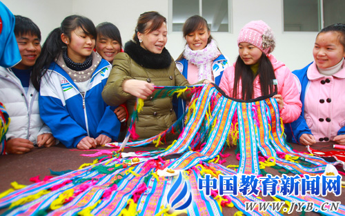 丹寨民族職業(yè)技術學校實習基地內(nèi),教師在傳授民族彩編技藝。(中國教育報 張學軍攝)