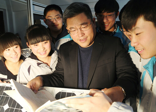 “熱愛學(xué)生就應(yīng)該為學(xué)生謀劃將來?!边@成了崔西展的工作座右銘。正如他在全程觀看了2013屆學(xué)生畢業(yè)典禮演出后在微博中寫到:“學(xué)生成熟了,教師成功了;學(xué)生快樂了,教師幸福了。看著家長、學(xué)生、老師們淚流滿面的笑容,我流淚了。我覺得自己是一個期待收成的老農(nóng)民,今天坐在堆滿果實的黑土地上,怎能不喜極而泣?這種體驗很獨特!”