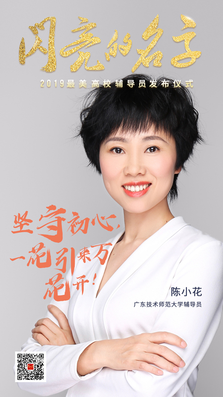 2019年,陳小花成為教育部首批“高校思想政治工作中青年骨干隊(duì)伍建設(shè)”項(xiàng)目主持人。此外,她主持的廣東省名輔導(dǎo)員“陳小花工作室”吸納來自全省10余所高校的輔導(dǎo)員,努力培養(yǎng)一批就業(yè)創(chuàng)業(yè)指導(dǎo)工作專家。近年來,她多次受委派為全國、全省輔導(dǎo)員各類培訓(xùn)班授課,60余次被兄弟院校邀請作輔導(dǎo)員典型示范講座和專場輔導(dǎo)報(bào)告。