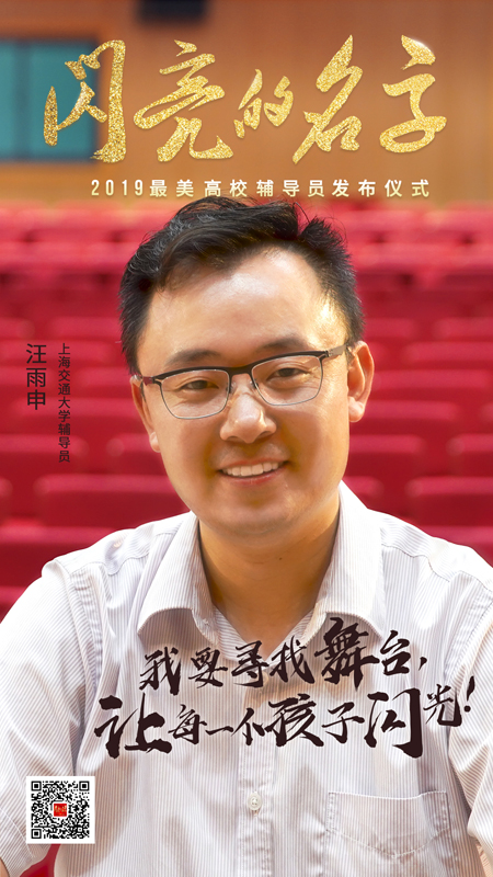十九大報告中,習(xí)近平總書記向全黨全國人民發(fā)出了“堅定文化自信,推動社會主義文化繁榮興盛”的偉大號召。國家之魂,文以化之,文以鑄之。18年來,汪雨申老師始終站在教書育人工作第一線,致力于成為一名開墾交大校園文化、播種交大精神文化、培育交大原創(chuàng)文化的實踐者和開拓者,他用自己的青春歲月,在交大校園里傳播人文特質(zhì)文化,譜寫出育人筑夢的華麗篇章!