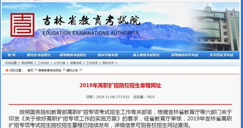 彩練新聞從吉林省教育考試院網(wǎng)站上獲悉,我省2019年高職擴(kuò)招院校招生章程網(wǎng)址公布了!