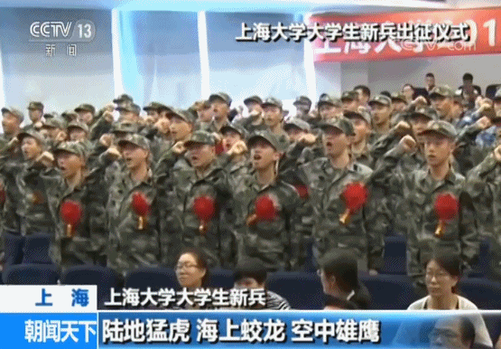 這段令人熱血沸騰的畫(huà)面是18日下午上海大學(xué)大學(xué)生新兵出征儀式上的宣誓。76名參軍入伍的同學(xué),將奔赴祖國(guó)各地,保家衛(wèi)國(guó)。