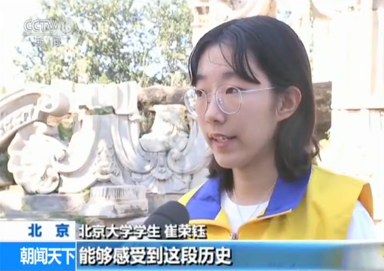 北京大學(xué)學(xué)生 崔榮鈺:圓明園作為一個(gè)愛(ài)國(guó)主義教育基地,我希望我作為一個(gè)歷史的講解者,讓聽(tīng)到我講解的游客能夠感受到這段歷史,然后感受到自己身上的民族責(zé)任感,更加熱愛(ài)我們的祖國(guó)。