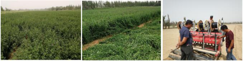 b.苜蓿地下滴灌節(jié)水飼草生產(chǎn)田,單播紫花苜蓿,播量2.0 kg/畝,在于田縣推廣面積300畝。