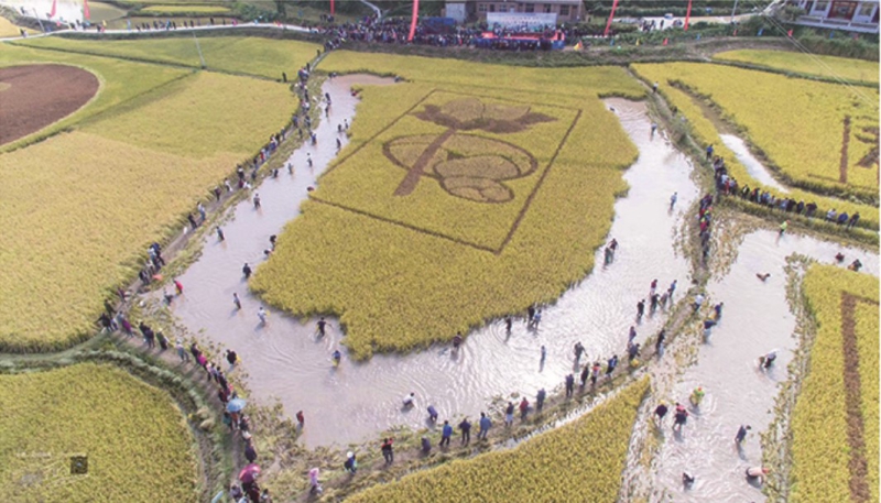 學(xué)校幫扶成員大力踐行大林村的“文化強(qiáng)村”戰(zhàn)略,充分挖掘傳統(tǒng)農(nóng)耕文化。2017年、2018年在鎮(zhèn)政府的支持下,組織在稻田開展“插秧節(jié)”、“摸魚節(jié)”、“豐收節(jié)”等稻漁系列文化活動(dòng)。創(chuàng)建“和美白土”彩色稻字樣、村莊“核心價(jià)值觀”字畫等田園風(fēng)光。用“字繪大林”傳遞“重農(nóng)崇農(nóng)”的價(jià)值取向,用“智慧稻漁”營(yíng)造“強(qiáng)農(nóng)富農(nóng)”的濃厚氛圍,用“智匯扶貧”凝聚“愛農(nóng)支農(nóng)”的強(qiáng)大力量?;顒?dòng)的開展,使大林村的稻漁“火起來”了,“土文化”“洋”起來了,“萬州烤魚”也來爭(zhēng)購(gòu)“稻田魚”了,村民們自豪感、成就感、幸福感強(qiáng)起來了,農(nóng)耕文化在發(fā)展稻漁產(chǎn)業(yè)和建設(shè)“美麗大林”中得以進(jìn)步和升華。