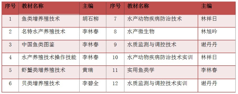 表2. 我院水產(chǎn)養(yǎng)殖技術(shù)專業(yè)教師主編的“十二五”職業(yè)教育規(guī)劃教材