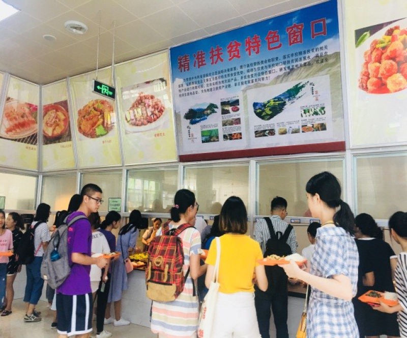 ?。ǘ┫M扶貧形式多樣,參與主體廣泛。充分挖掘?qū)W校消費潛力,積極探索,大膽創(chuàng)新,打出系列消費扶貧“組合拳”,形成了以學(xué)生食堂定點采購為主體,校園超市扶貧專柜、校園實體店、精準(zhǔn)扶貧特色窗口、學(xué)校電商平臺精準(zhǔn)扶貧專柜、精準(zhǔn)扶貧美食文化節(jié)等多種形式并存的消費扶貧格局。形式的多樣化,消費的便捷性,保證了參與主體的廣泛性,學(xué)生、教職工及其家屬、周邊居民都成為學(xué)校消費扶貧的參與者。