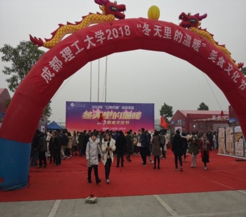 (一)消費扶貧,多措并舉。為充分發(fā)揮學(xué)校師生這一穩(wěn)定消費市場的潛力,學(xué)校開展了多種形式的以購代捐活動。2017年5月,高縣農(nóng)副產(chǎn)品免入場費進(jìn)入學(xué)校超市,并設(shè)立精準(zhǔn)扶貧專柜。同年12月,學(xué)校舉辦“黑水縣黑山羊美食文化節(jié)”,短短一周銷售額達(dá)21 萬元;2018年3月,學(xué)校后勤服務(wù)集團(tuán)分別與兩縣簽訂“農(nóng)副產(chǎn)品定點采購協(xié)議”,學(xué)生食堂開始定點采購兩地農(nóng)副產(chǎn)品(定點幫扶村負(fù)責(zé)供貨)。9月,學(xué)生食堂開辟“精準(zhǔn)扶貧特色窗口”,專門售賣使用兩縣農(nóng)副產(chǎn)品加工的菜品。10月,學(xué)校家屬區(qū)農(nóng)貿(mào)市場騰出50平米攤位(免兩年租金)開設(shè)“黑水、高縣農(nóng)副產(chǎn)品實體店”,并在校園電商平臺同步上線“精準(zhǔn)扶貧專柜”。同時,學(xué)校工會在兩縣定點幫扶村采購價值50萬元的農(nóng)副產(chǎn)品。12月,學(xué)校聯(lián)手高縣、黑水縣等5個貧困縣,隆重舉辦“成都理工大學(xué)精準(zhǔn)扶貧美食文化節(jié)”,短短3天銷售額達(dá)120余萬元。