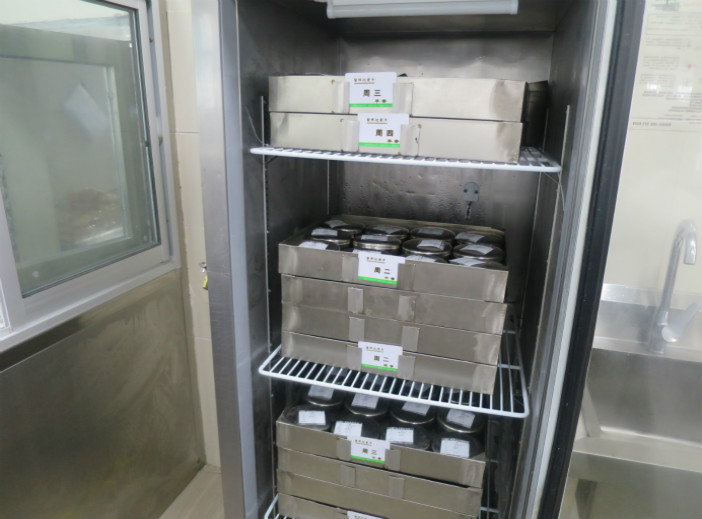 據(jù)李立群副校長介紹,食堂每天的飯菜會都取樣并在此保留48小時,一旦有學(xué)生出現(xiàn)食物中毒現(xiàn)象,便能立刻調(diào)查出是哪種菜出了問題。