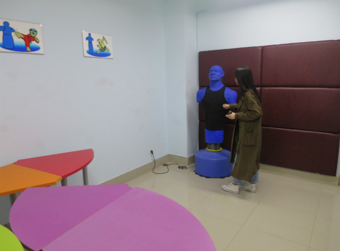 學(xué)校十分重視新疆班學(xué)生的心理健康安全教育,設(shè)有“學(xué)生成長指導(dǎo)中心”,為學(xué)生提供心理輔導(dǎo)與心理咨詢服務(wù),減輕他們因遠(yuǎn)離親人、學(xué)習(xí)競爭帶來的壓力。記者一行參觀了與心理健康安全教育相關(guān)的心理閱覽室、情緒宣泄室、音樂放松室等,室內(nèi)的裝潢色彩柔和,為學(xué)生提供了舒適的心理治愈環(huán)境。
